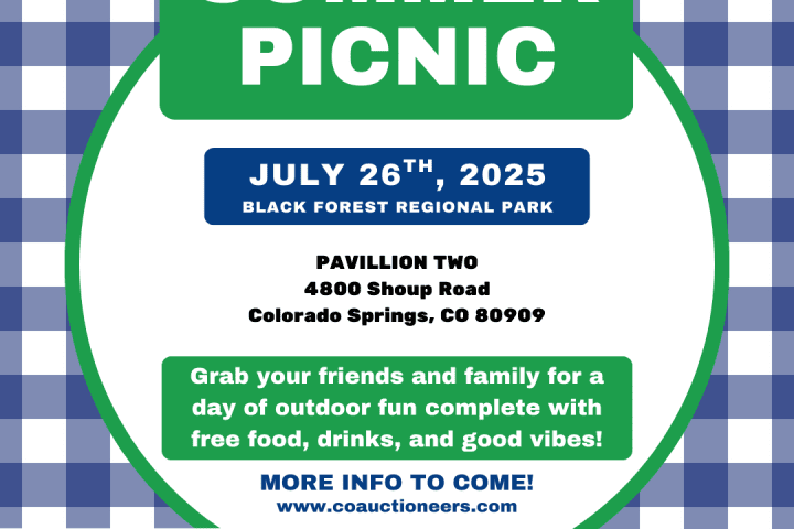 The Colorado Auctioneers Association exists to promote public auctions and the auction method of marketing through professional and ethical auctioneering practices in the state of Colorado. Membership is open to auctioneers, auction companies, and associates with an interest in this age-old method of marketing.